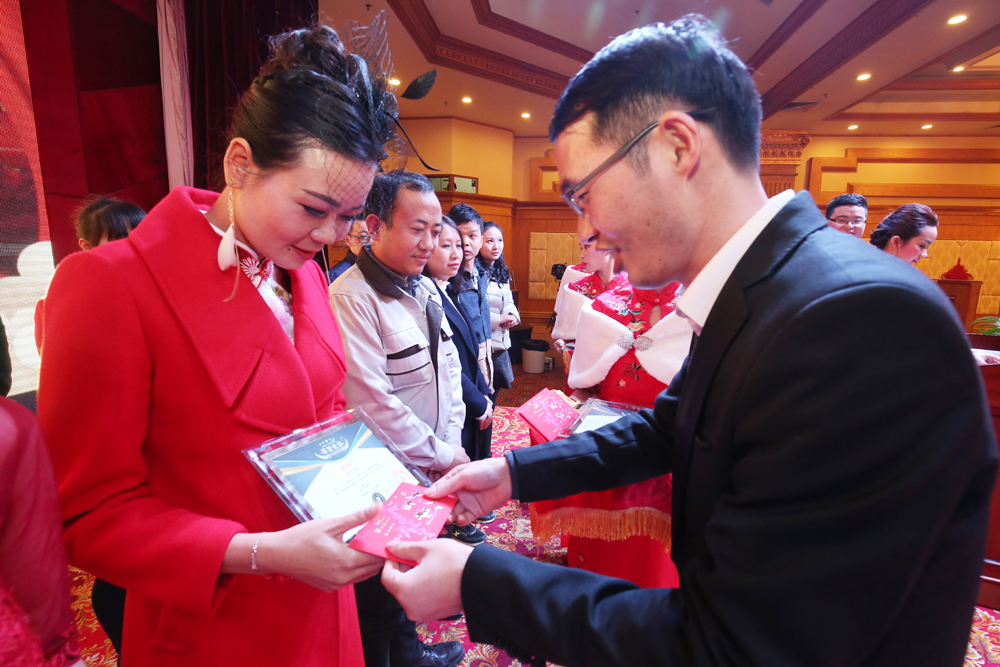 ▲年度優(yōu)秀員工表彰儀式上,公司董事長為文軒優(yōu)秀精英進(jìn)行頒獎,并合影留念,鼓勵大家在新的一年力爭上游,勇攀高峰。